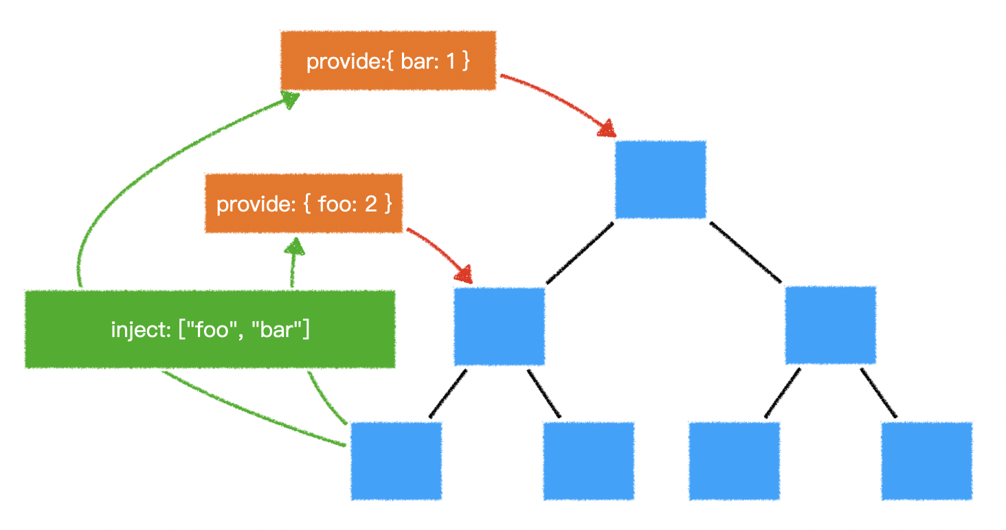 在vue2中,提供了provide和inject配置,可以让开发者在高层组件中注入数据,然后在后代组件中使用