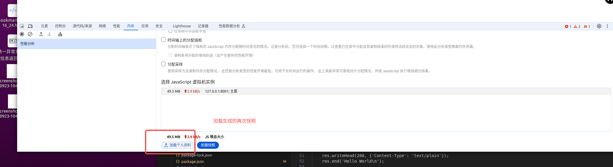 触发生成内存快照